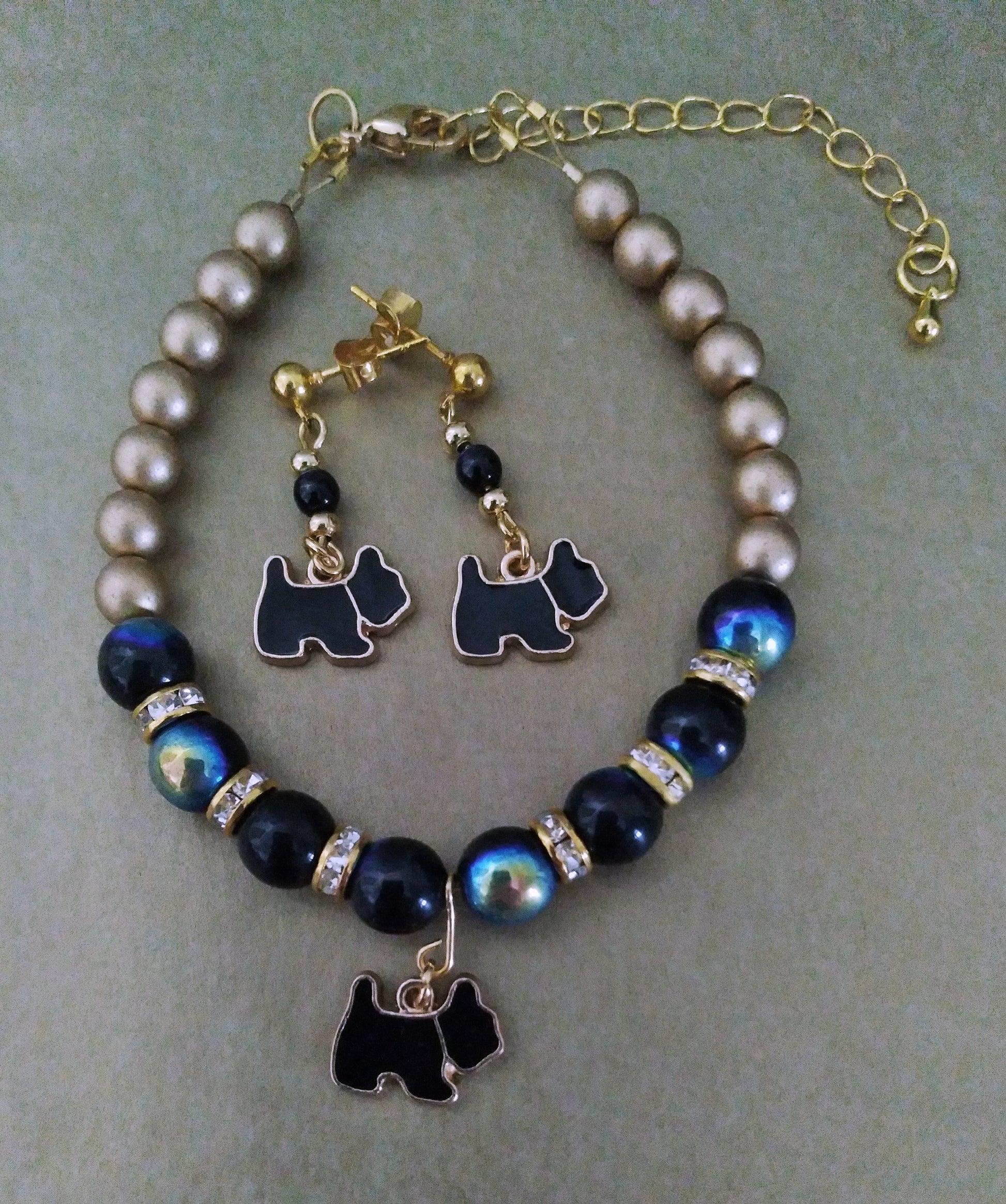 Ensemble bracelet et boucles d'oreilles "Beam Me Up Scotty Dog"